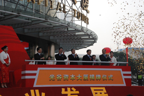 11月17日,光谷資本大廈揭牌儀式隆重舉行。省委書記、省人大常委會主任李鴻忠,省長王國生,省委副書記張昌爾,省委常委、武漢市委書記阮成發(fā),省委常委、省委秘書長李春明等省、市領(lǐng)導(dǎo)出席揭牌儀式。