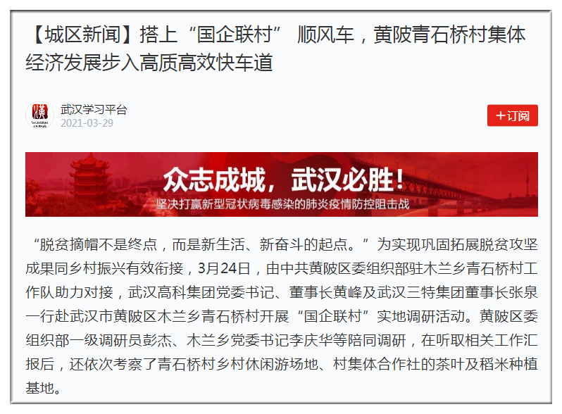 學(xué)習(xí)強(qiáng)國(guó):搭上“國(guó)企聯(lián)村” 順風(fēng)車(chē),黃陂青石橋村集體經(jīng)濟(jì)發(fā)展步入高質(zhì)高效快車(chē)道