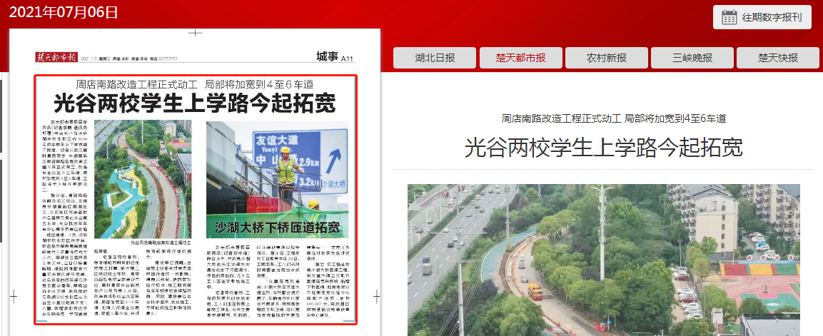 楚天都市報極目新聞訊(記者李博 通訊員郭強)光谷五小和湯遜湖學校北校區(qū)近9000名師生乘車上下學有望不擁堵。記者從武漢高科集團獲悉,東湖高新區(qū)周店南路拓寬改造工程今日正式開工,改造后全線至少三車道,局部加寬到4至6車道,工程將于9月開學前完工。