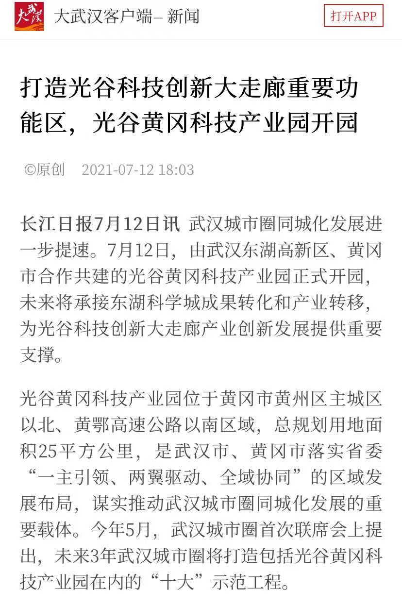 長江日報大武漢客戶端:打造光谷科技創(chuàng)新大走廊重要功能區(qū),光谷黃岡科技產(chǎn)業(yè)園開園
