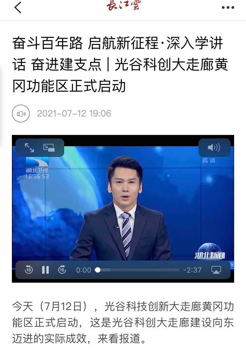 長江云客戶端:《奮斗百年路 啟航新征程·深入學(xué)講話 奮進(jìn)建支點 | 光谷科創(chuàng)大走廊黃岡功能區(qū)正式啟動》