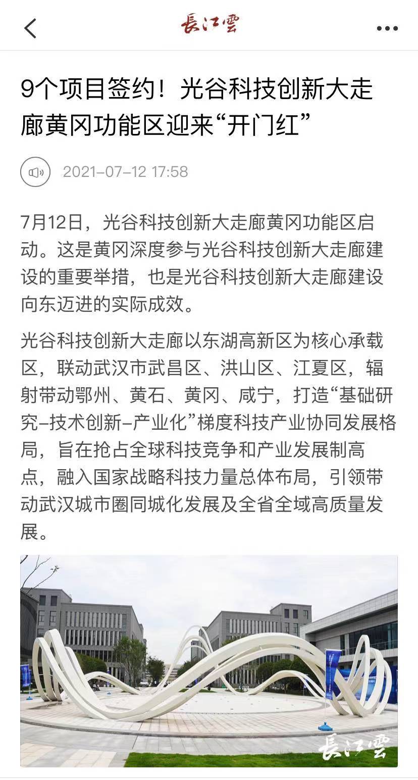 長江日報大武漢客戶端 :《光谷與黃岡攜手,光谷科技創(chuàng)新大走廊黃岡功能區(qū)啟動》