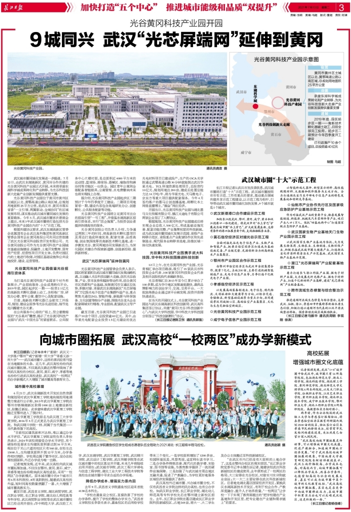 長江日報:《光谷黃岡科技產(chǎn)業(yè)園開園?9城同興 武漢“光芯屏端網(wǎng)”延伸到黃岡》