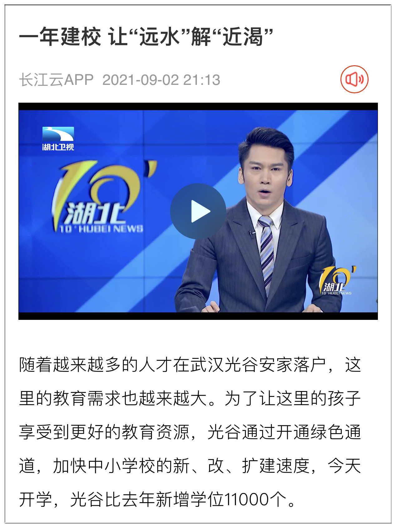 武漢市東湖高新區(qū)教育局副局長(zhǎng)楊永欣:“確保了學(xué)校建設(shè)實(shí)行并聯(lián)審批的綠色通道,已經(jīng)連續(xù)多年保持了每年交付3所以上學(xué)校,新改擴(kuò)建增加學(xué)位超過1萬個(gè)。根據(jù)東湖國家自主創(chuàng)新示范區(qū)中小學(xué)布局規(guī)劃,我們到2035年,會(huì)有132所學(xué)校?!?/span>