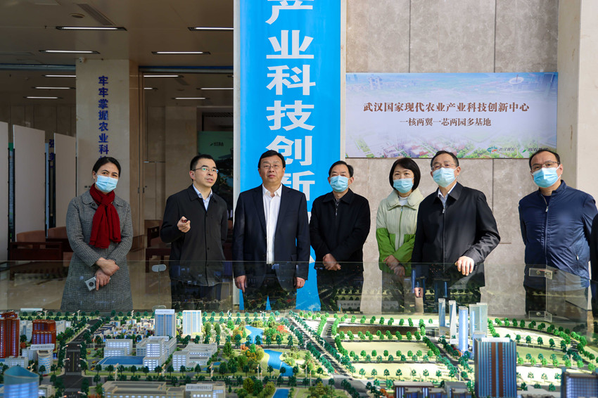 省農(nóng)業(yè)農(nóng)村廳副廳長(zhǎng)項(xiàng)克強(qiáng)、總農(nóng)藝師李順清,武漢市政府副秘書長(zhǎng)陳明權(quán),武漢市農(nóng)業(yè)農(nóng)村局黨組書記、局長(zhǎng)王玉珍,東湖高新區(qū)管委會(huì)副主任李首文,武漢高科集團(tuán)黨委書記、董事長(zhǎng)黃峰,總經(jīng)理高尚等參加調(diào)研。