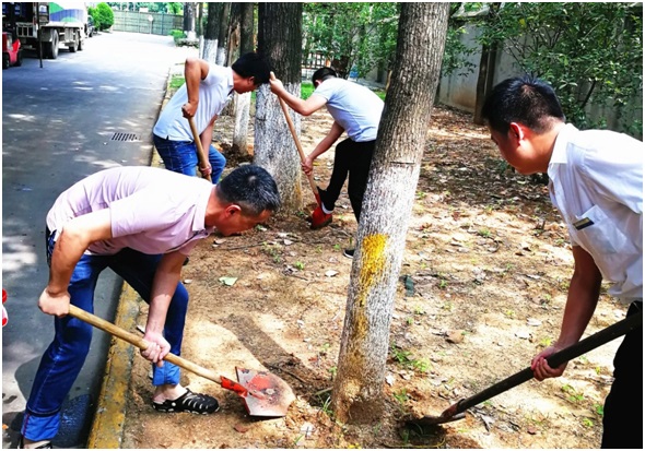 對生長茂盛的喬木,及時(shí)修枝整形,減少水分散失,改善通風(fēng)透光透氣條件,提高苗木抗逆能力。夏季氣溫高、濕度大,高溫高濕環(huán)境更易滋生病害,武漢高科集團(tuán)所屬各園區(qū)在抗旱過程中,通過合理修剪苗木,改善綠化通風(fēng)條件,連續(xù)循環(huán)檢查,加強(qiáng)消殺工作等方式抑制各類病害、蟲害的發(fā)生。