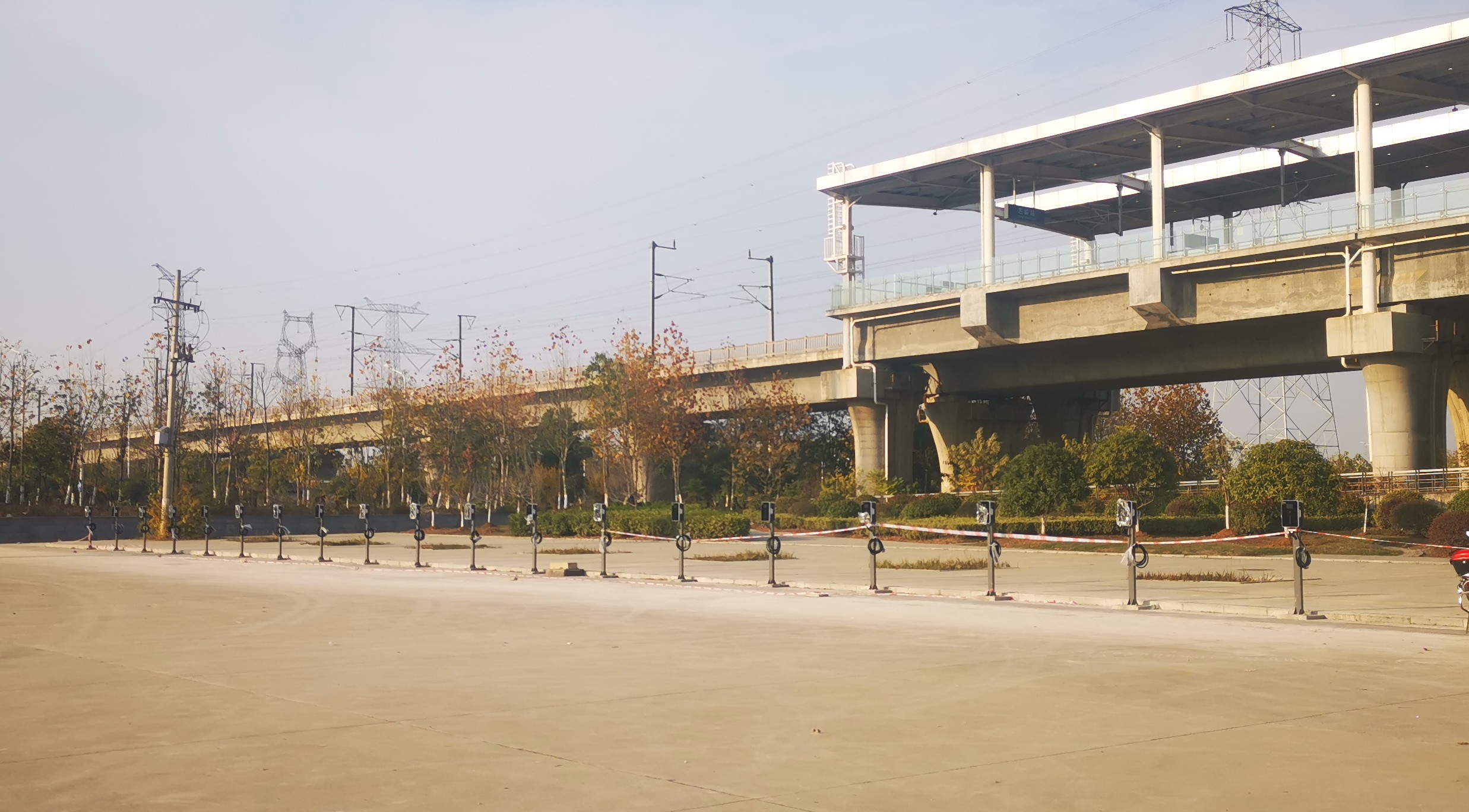 武黃城際鐵路左嶺站站前廣場的充電樁