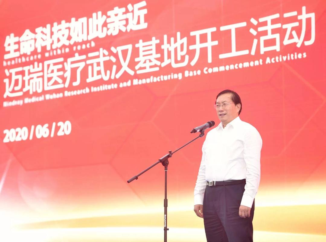 ▲湖北省委常委、武漢市委書記王忠林出席邁瑞醫(yī)療武漢基地開工活動并講話