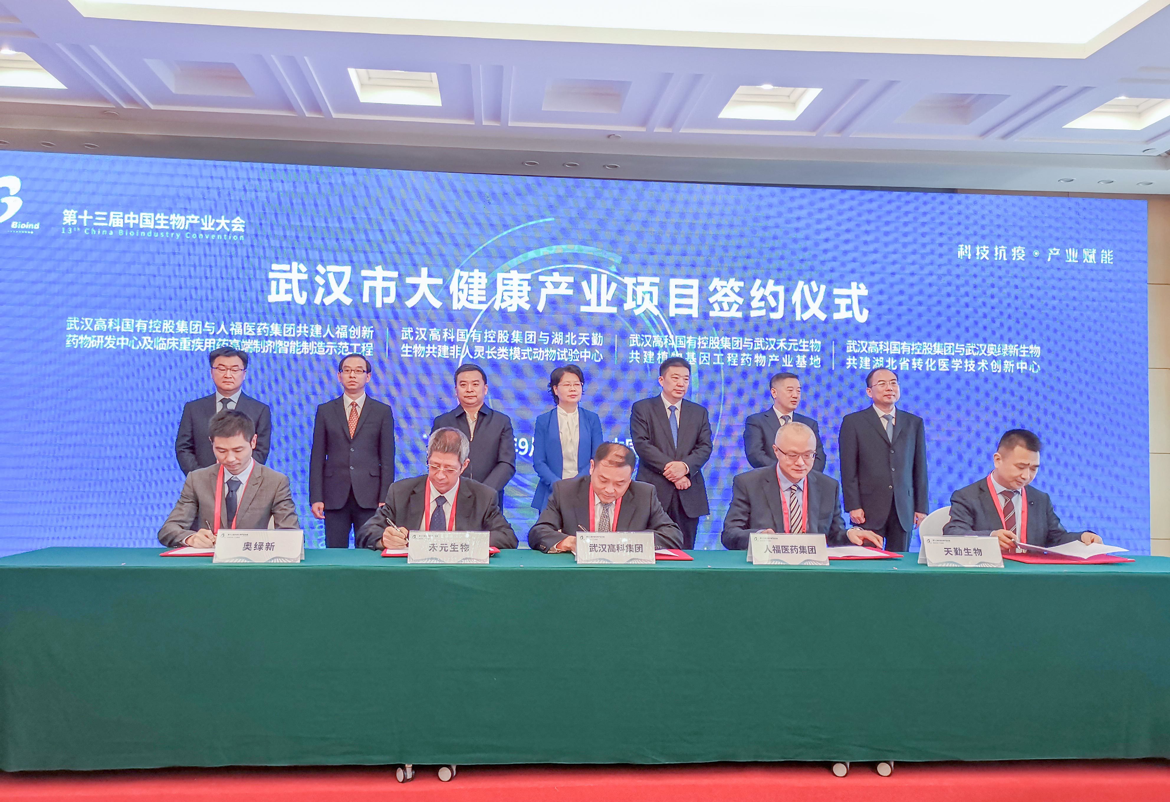 武漢高科集團(tuán)黨委書(shū)記、董事長(zhǎng)黃峰參加會(huì)議,并與人福醫(yī)藥集團(tuán)股份公司、武漢禾元生物科技股份有限公司、武漢奧綠新生物科技股份有限公司、湖北天勤生物科技有限公司簽署投資合作框架協(xié)議,助力武漢市疫后重振和建設(shè)世界級(jí)大健康產(chǎn)業(yè)集群。