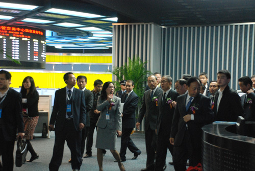 上午10:10分,武漢市長唐良智宣布揭牌儀式開始,并介紹光谷資本大廈建設(shè)背景、一期建設(shè)情況和發(fā)展規(guī)劃。市委常委、東湖高新區(qū)管委會黨工委書記賈耀斌致歡迎辭。省領(lǐng)導(dǎo)李鴻忠、王國生、張昌爾、阮成發(fā)、李春明為光谷資本大廈揭牌。李鴻忠書記、王國生省長并為武漢股權(quán)托管交易中心、武漢金融資產(chǎn)交易所、武漢農(nóng)畜產(chǎn)品交易所揭牌并為三家單位敲擊編鐘,啟動了各交易中心的開盤儀式。隨后,出席揭牌儀式的各位領(lǐng)導(dǎo),來賓參觀了三樓光谷資本大廈公共交易大廳和部分入駐的單位。集團(tuán)公司董事長趙家新、總經(jīng)理范蘊(yùn)玉等領(lǐng)導(dǎo)陪同考察。