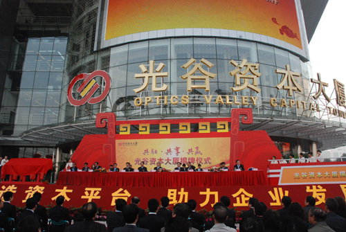 11月17日,光谷資本大廈揭牌儀式隆重舉行。省委書記、省人大常委會主任李鴻忠,省長王國生,省委副書記張昌爾,省委常委、武漢市委書記阮成發(fā),省委常委、省委秘書長李春明等省、市領(lǐng)導(dǎo)出席揭牌儀式。