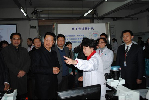 2月3日下午,省委副書記張昌爾、省委副秘書長(zhǎng)岳勇一行前往武漢蘭丁醫(yī)學(xué)高科技有限公司進(jìn)行調(diào)研。張昌爾認(rèn)真聽取了孫小蓉博士關(guān)于全自動(dòng)細(xì)胞DNA技術(shù)及武漢市20萬(wàn)婦女宮頸癌篩查成功模式的介紹,實(shí)地參觀了篩查中心實(shí)驗(yàn)室。張昌爾表示,蘭丁的建設(shè)發(fā)展得到了中央、省、市、開發(fā)區(qū)各級(jí)領(lǐng)導(dǎo)的高度重視,該系統(tǒng)產(chǎn)品技術(shù)先進(jìn)、市場(chǎng)前景大。他對(duì)蘭丁十年來(lái)不斷創(chuàng)新所取得的成績(jī)予以充分肯定,并鼓勵(lì)蘭丁加快發(fā)展,建標(biāo)準(zhǔn)創(chuàng)品牌,努力打造細(xì)胞學(xué)診斷領(lǐng)域的世界一流企業(yè)。