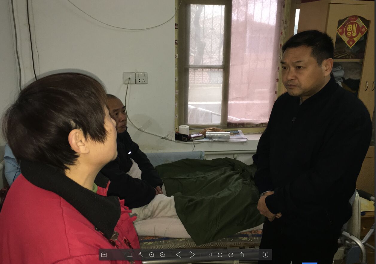 ??????? 劉師傅躺在病床上握著領(lǐng)導(dǎo)的手,百感交集。對(duì)組織的溫暖、領(lǐng)導(dǎo)的關(guān)懷表示衷心的感謝。