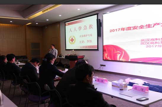 ??????? 會上播放了武漢市近年來安全生產(chǎn)警示錄,邀請了武漢市紅十字會專家李恒老師給與會者上了一堂生動的應(yīng)急救援培訓(xùn)課。