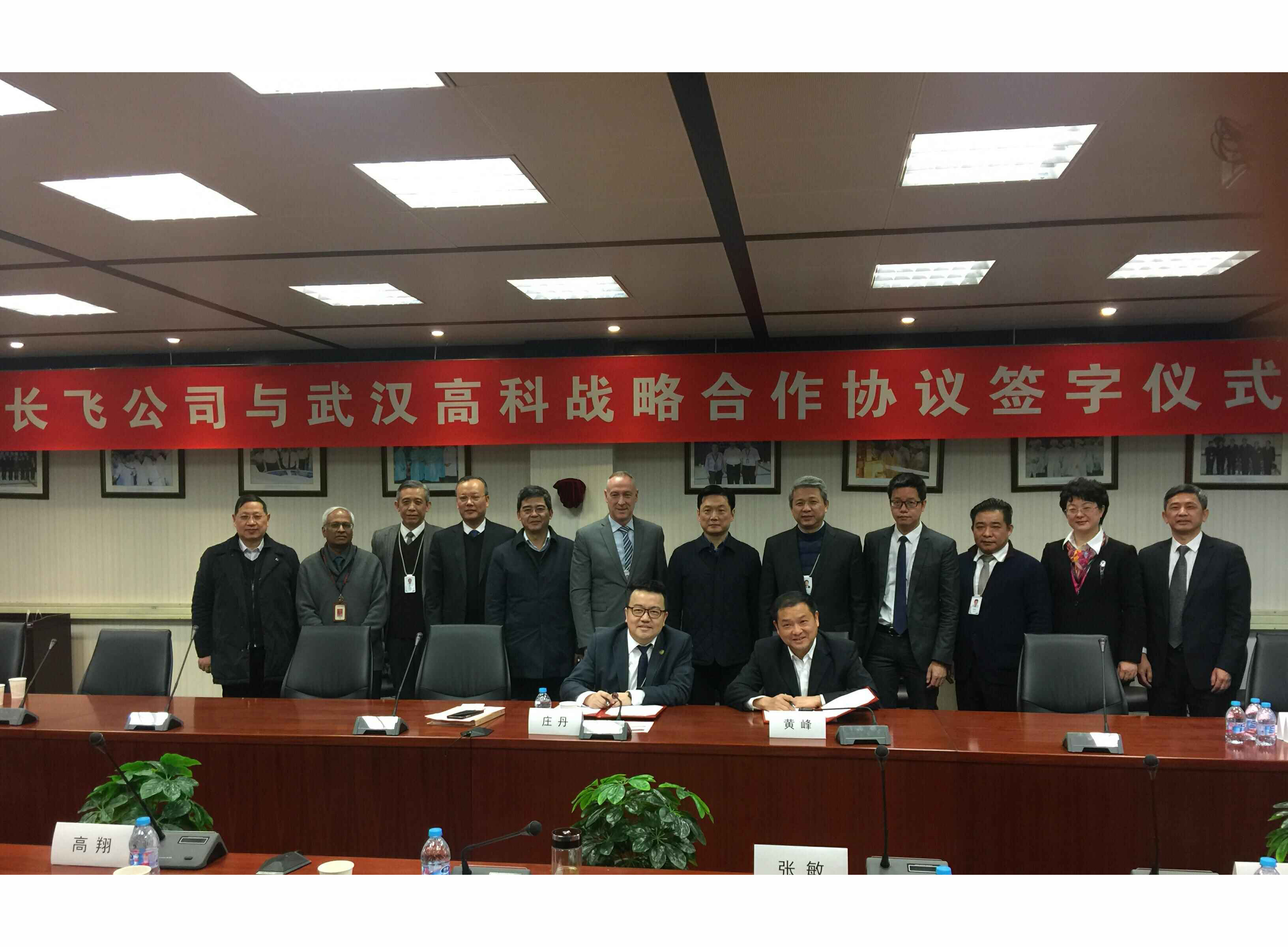 長(zhǎng)飛公司總裁莊丹與武漢高科集團(tuán)董事長(zhǎng)黃峰在戰(zhàn)略合作協(xié)議上簽字。