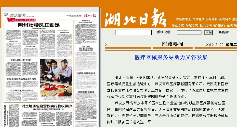 武漢東湖高新技術(shù)開發(fā)區(qū)在生物產(chǎn)業(yè)基地內(nèi)規(guī)劃建設(shè)醫(yī)療器械專業(yè)園區(qū),由園區(qū)組建公共服務(wù)平臺,為入駐企業(yè)提供醫(yī)療器械成果轉(zhuǎn)化、研發(fā)、孵化、生產(chǎn)等相關(guān)配套服務(wù)。三方合作協(xié)議的簽訂,標(biāo)志著醫(yī)療器械檢驗(yàn)檢測技術(shù)服務(wù)正式進(jìn)入這一平臺。