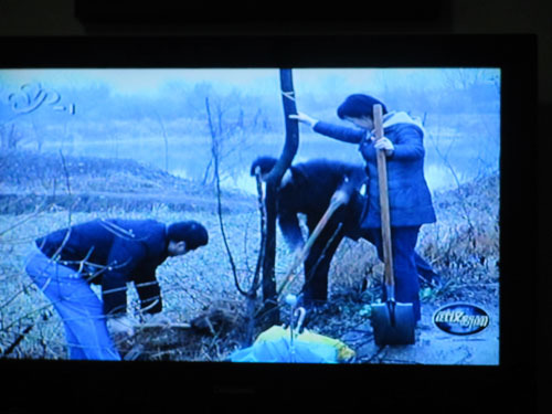 長江日報:市委宣傳部干部昨到新洲袁田村 冒雨栽樹 慰問貧困戶