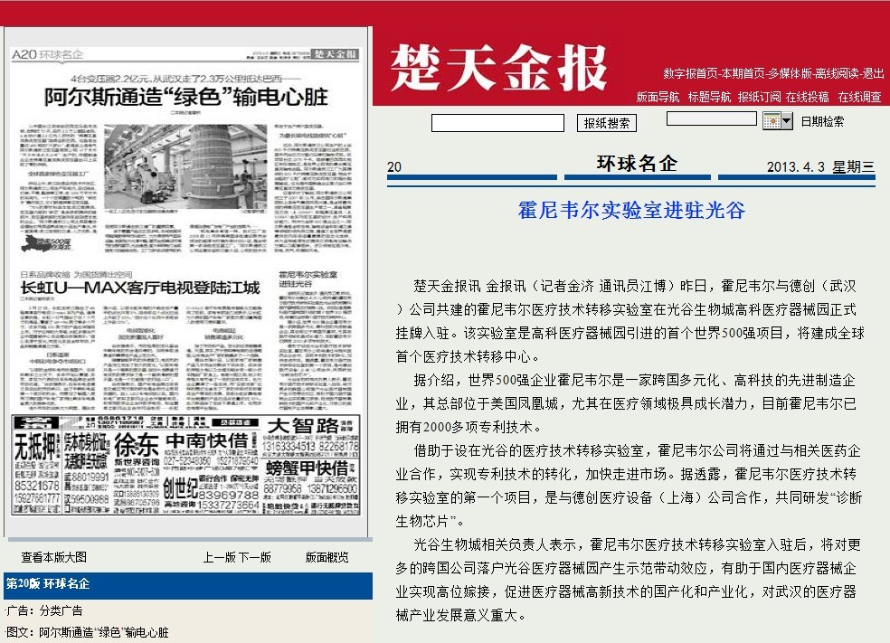 楚天金報(bào)訊?金報(bào)訊(記者金濟(jì)?通訊員江博)昨日,霍尼韋爾與德創(chuàng)(武漢)公司共建的霍尼韋爾醫(yī)療技術(shù)轉(zhuǎn)移實(shí)驗(yàn)室在光谷生物城高科醫(yī)療器械園正式掛牌入駐。該實(shí)驗(yàn)室是高科醫(yī)療器械園引進(jìn)的首個(gè)世界500強(qiáng)項(xiàng)目,將建成全球首個(gè)醫(yī)療技術(shù)轉(zhuǎn)移中心。