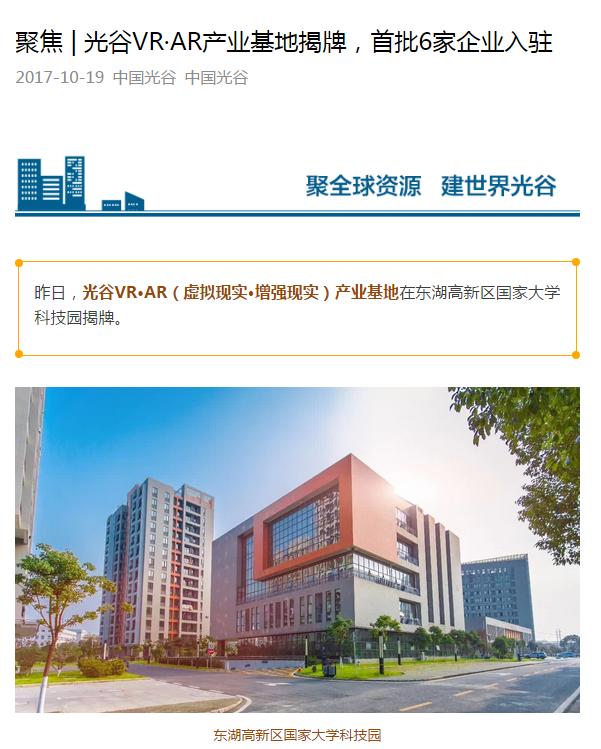 該基地由東湖高新區(qū)國家大學(xué)科技園與光谷VR·AR產(chǎn)業(yè)聯(lián)盟共建,首批有天之逸、知人科技、天宇至強、靈圖互動、幻亦互動、億諾凌科等6家企業(yè)簽約入駐。