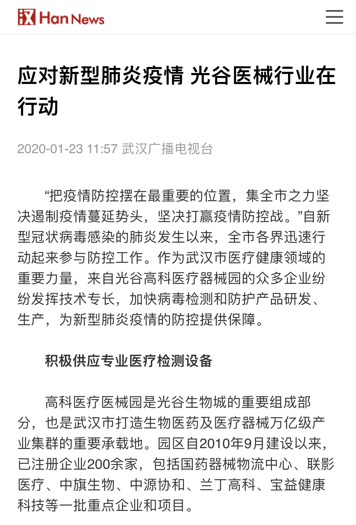 日前,高科醫(yī)療器械園內(nèi)的湖北新縱科公司和達(dá)安基因公司均宣布已研發(fā)出針對(duì)新型冠狀病毒的試劑盒。