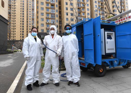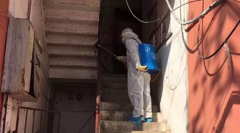 譚茂科在社區(qū)從事消殺工作 武漢碧水集團(tuán)供圖