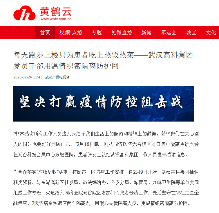 截至2月24日早上9點,武漢高科集團(tuán)工作專班在兩個隔離點已累計接收患者32人,為同濟(jì)醫(yī)院光谷院區(qū)發(fā)熱門診分流提供了有力保障,落實了新冠肺炎患者救治閉環(huán)管理要求。