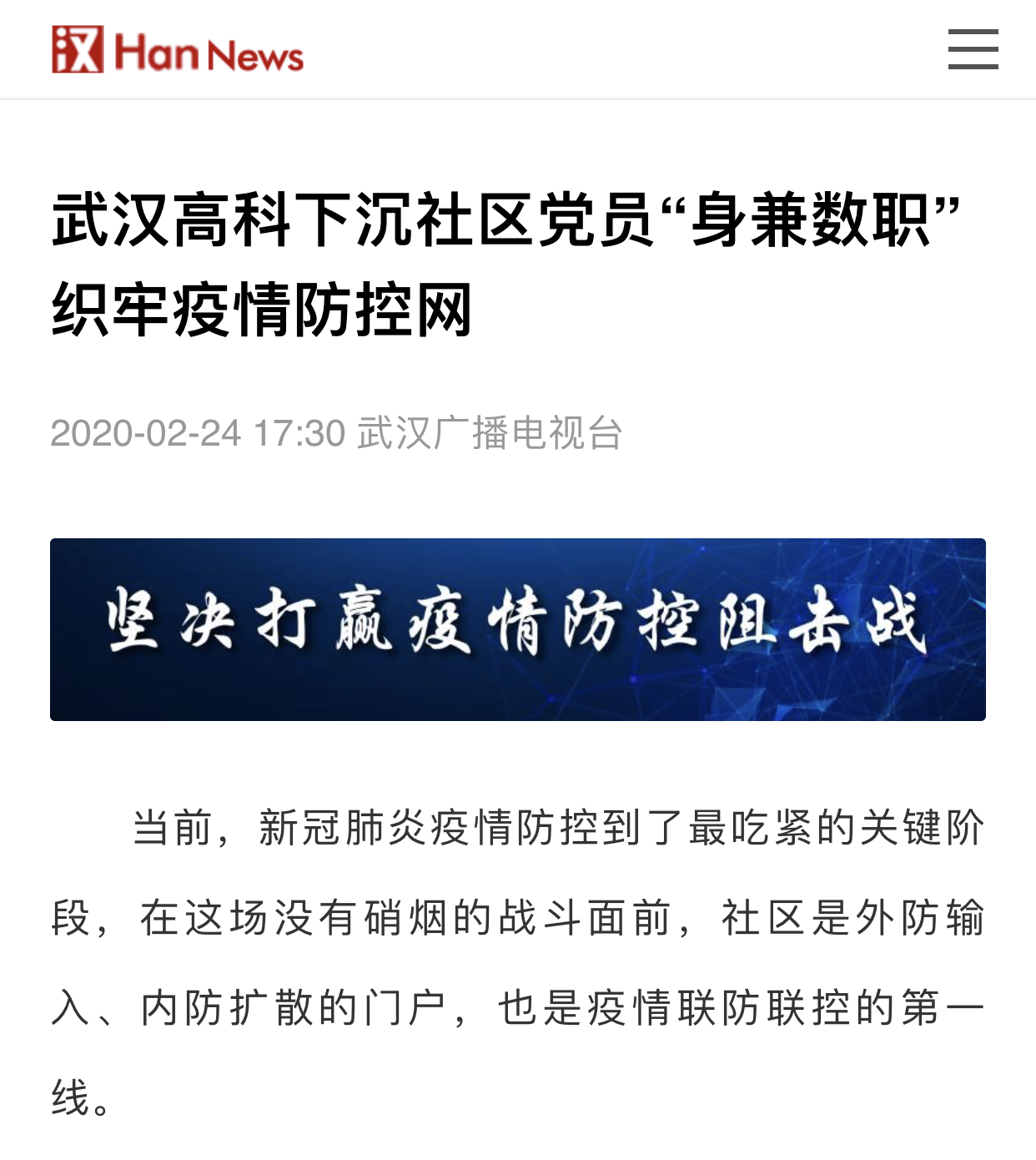 做好社區(qū)封控,現(xiàn)在仍是咬牙堅(jiān)持的時(shí)刻。武漢高科集團(tuán)下沉社區(qū)黨員將繼續(xù)與社區(qū)、物業(yè)、志愿者一道,以更大力度加強(qiáng)封閉管理,做好社區(qū)居民服務(wù),積極動(dòng)員廣大居民參與,共同筑牢防疫一線“安全墻”。