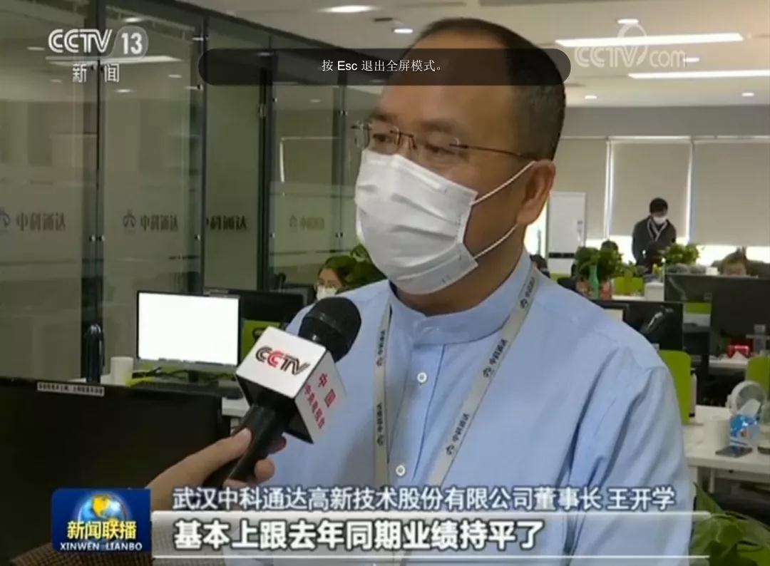 4月15日,中央電視臺(tái)《新聞聯(lián)播》播出報(bào)道《【毫不放松防反彈】武漢:發(fā)展在線經(jīng)濟(jì) 壯大新增長(zhǎng)點(diǎn)》,其中再次聚焦光谷,報(bào)道中科通達(dá)等光谷企業(yè)創(chuàng)新經(jīng)營(yíng)業(yè)態(tài)、結(jié)合遠(yuǎn)程辦公及線上營(yíng)銷(xiāo)方式推動(dòng)復(fù)工復(fù)產(chǎn)等。