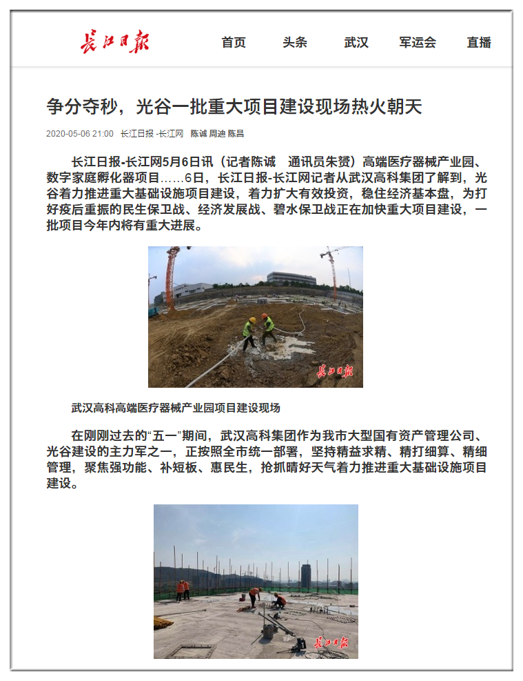 在剛剛過去的“五一”期間,武漢高科集團作為我市大型國有資產(chǎn)管理公司、光谷建設(shè)的主力軍之一,正按照全市統(tǒng)一部署,堅持精益求精、精打細(xì)算、精細(xì)管理,聚焦強功能、補短板、惠民生,搶抓晴好天氣著力推進重大基礎(chǔ)設(shè)施項目建設(shè)。