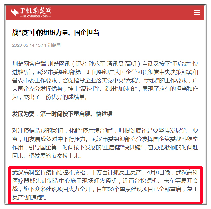 荊楚網(wǎng)客戶端-荊楚網(wǎng)訊(記者 孫永軍 通訊員 高明)自武漢按下“重啟鍵”“快進(jìn)鍵”后,武漢市委組織部第一時(shí)間組織廣大國(guó)企學(xué)習(xí)貫徹黨中央決策部署和省委市委工作要求,督促指導(dǎo)企業(yè)落實(shí)黨中央“六穩(wěn)”、“六?!钡墓ぷ饕?,廣大國(guó)企充分發(fā)揮優(yōu)勢(shì),掛上“高速擋”、跑出“加速度”,展現(xiàn)了應(yīng)有的擔(dān)當(dāng)和作為,交出了一份優(yōu)異的成績(jī)單。