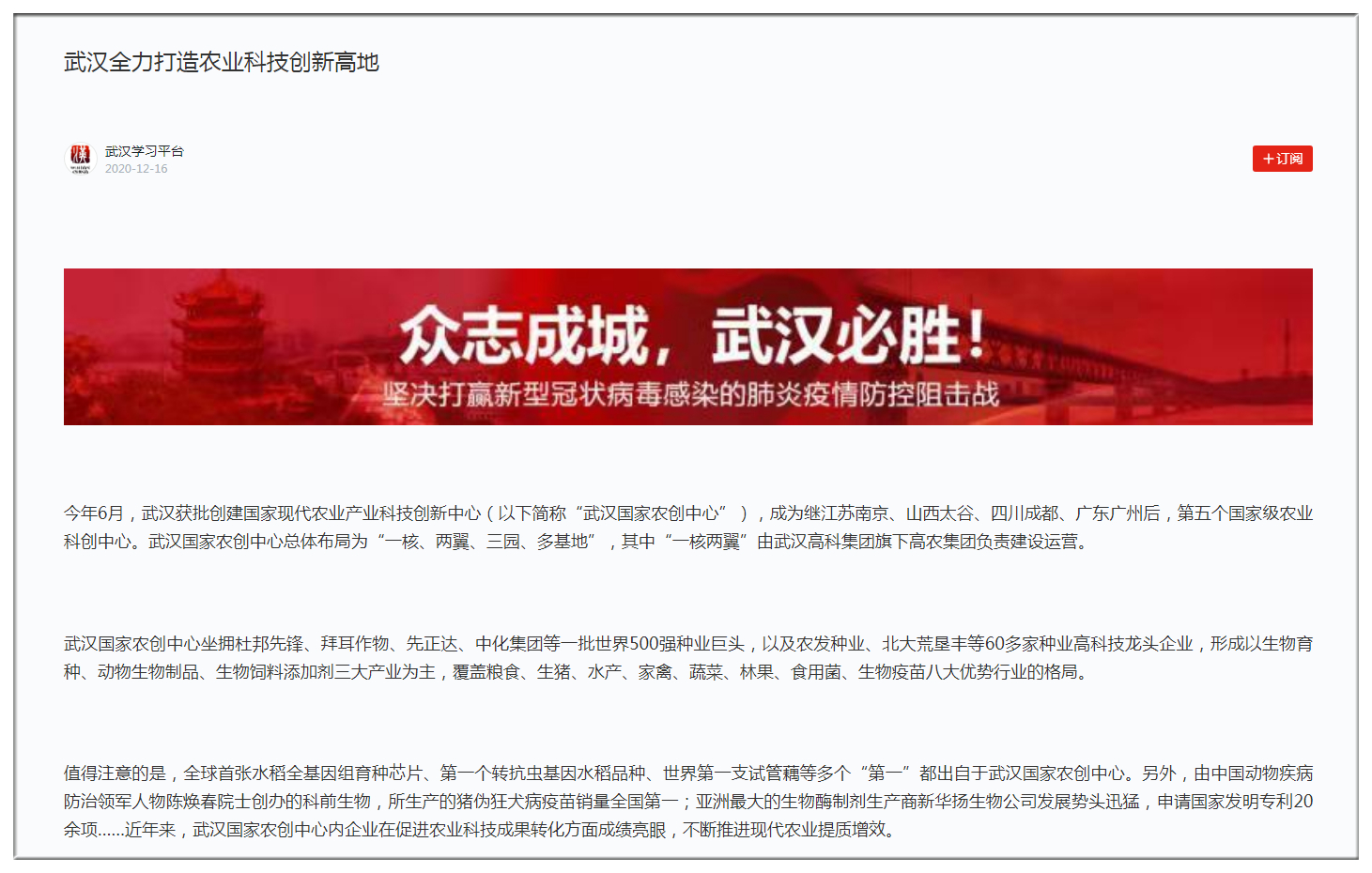 學(xué)習(xí)強(qiáng)國(guó):武漢全力打造農(nóng)業(yè)科技創(chuàng)新高地