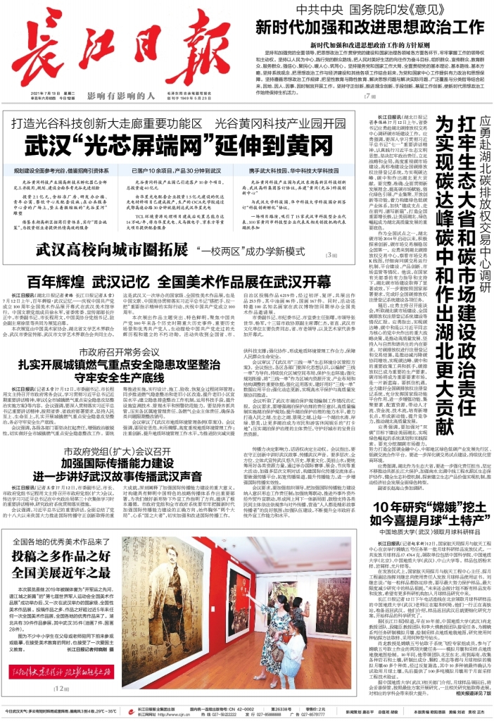 長江日報:《光谷黃岡科技產(chǎn)業(yè)園開園?9城同興 武漢“光芯屏端網(wǎng)”延伸到黃岡》