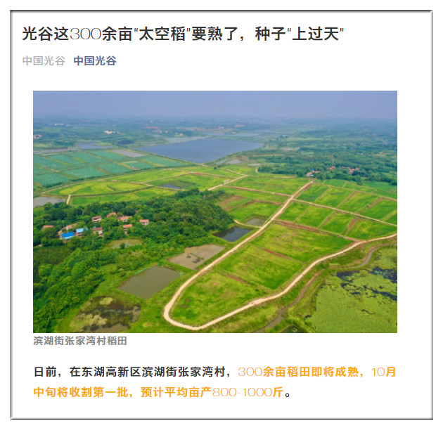 中國光谷:光谷這300余畝“太空稻”要熟了,種子“上過天”