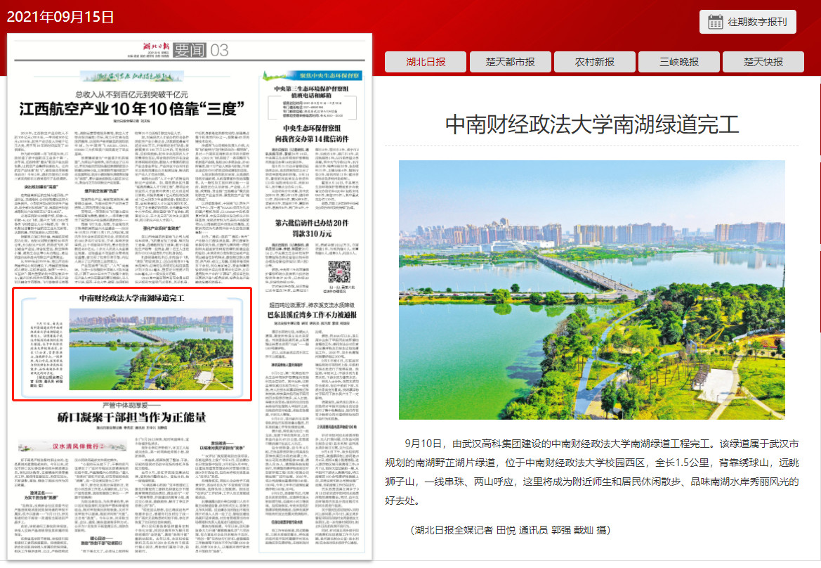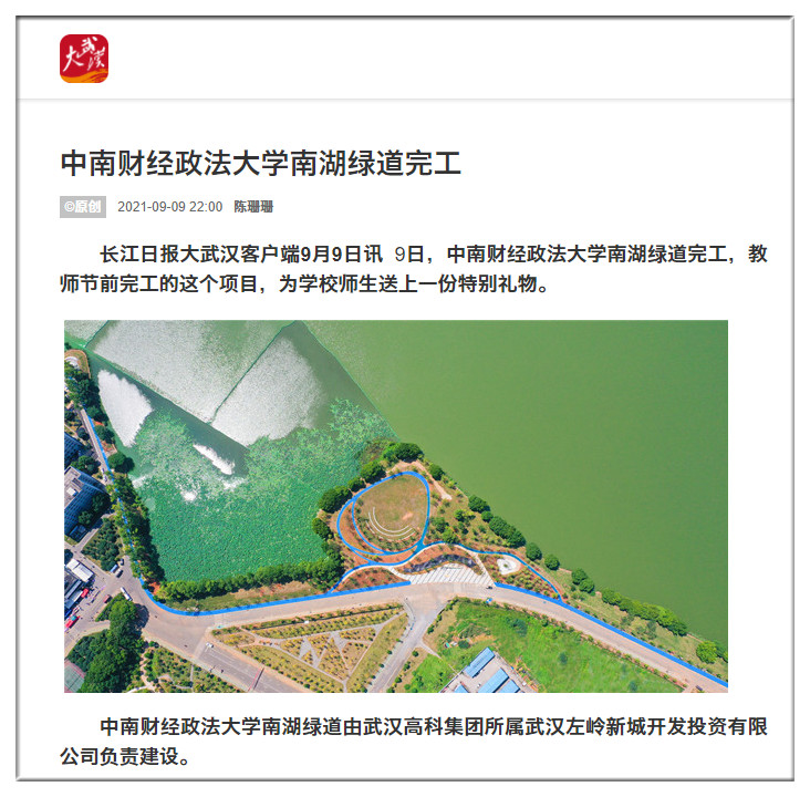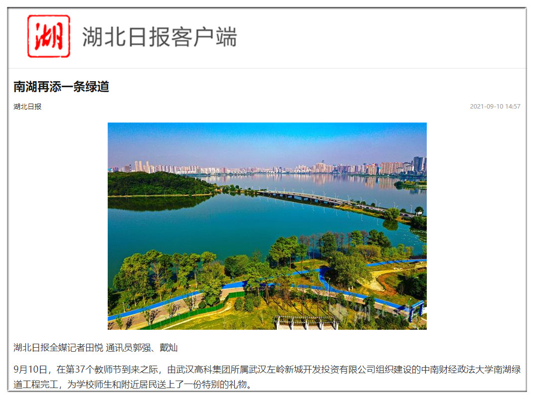 湖北日報(bào):中南財(cái)經(jīng)政法大學(xué)南湖綠道完工