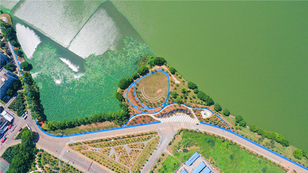 中南財(cái)經(jīng)政法大學(xué)南湖綠道總用地面積約4.39萬㎡,其中綠化面積約3.76萬㎡。結(jié)合湖岸風(fēng)景、校園特色,綠道采用水杉、烏桕、櫻花等9種喬木及德國鳶尾、花葉美人蕉等18種地被植物布景,輔以園林小品,設(shè)有花園漫道、南湖陽臺、松林湖影3大景觀片區(qū)。同時(shí),通過騎行綠道、環(huán)形條石、多功能草坪、生態(tài)挑臺、全景平臺、濱湖平臺,形成花園漫步、林蔭書香、南湖畫卷、松林晚渡、長天一色、平湖倚臥6處觀景節(jié)點(diǎn)。