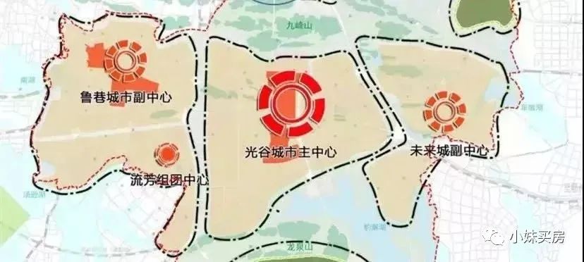 早在2019年2月,東湖高新區(qū)就提出要高起點(diǎn)建立“東部副中心”,加快推進(jìn)“一主兩副四組團(tuán)”的城區(qū)空間布局?!耙恢鳌笔枪夤戎行某牵皟筛薄眲t是魯巷副中心和未來城副中心。很顯然魯巷發(fā)展已經(jīng)飽和,光谷中心城門檻大幅提升,下一個(gè)將重點(diǎn)打造未來城副中心。