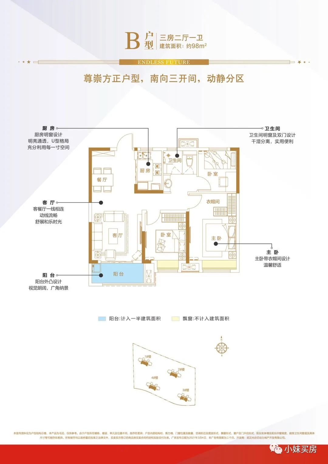 建面約98平:三開間朝南,動(dòng)靜分區(qū),明廚明衛(wèi)!百平內(nèi)三房,滿足更多居住可能,在控總價(jià)的基礎(chǔ)上功能性也足夠!客餐通廳,動(dòng)線更流暢,視覺上也更闊綽。