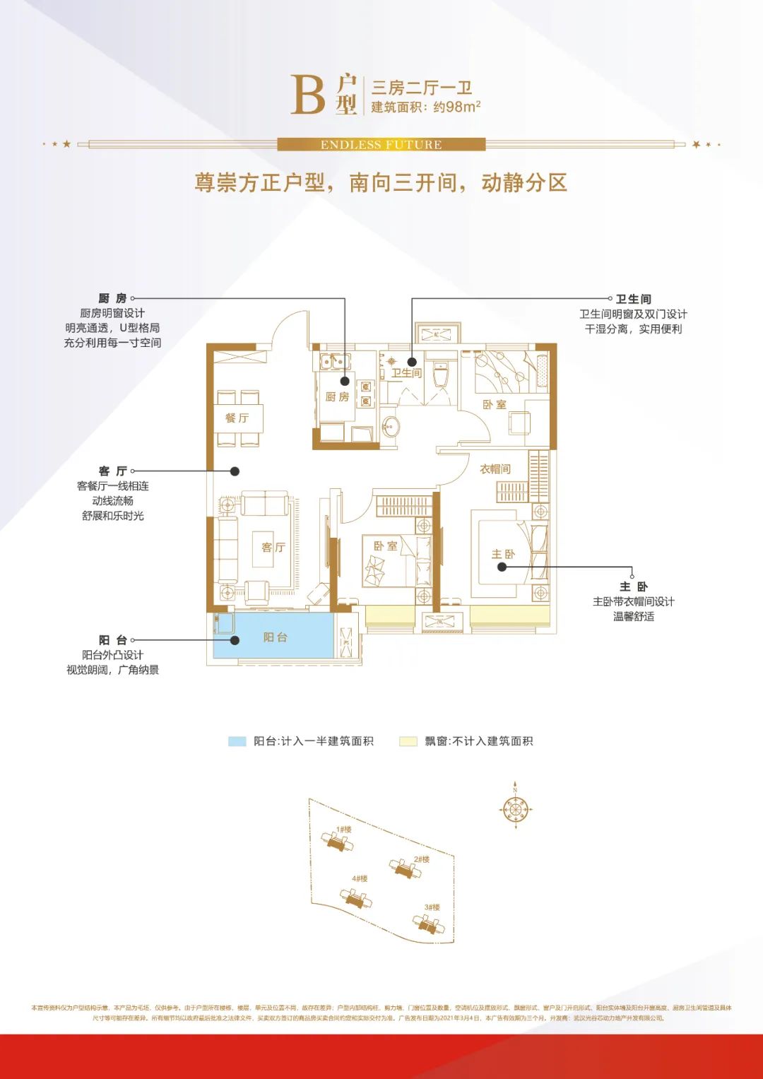 顯然,世茂在打造項(xiàng)目時(shí),真正考慮到了住戶居住感受。除了園林整體規(guī)劃,高科世茂十里星河的每一個(gè)戶型,也都是以舒適為前提。高科世茂十里星河目前首推的是位于A地塊北側(cè)的1#、4#號(hào)樓,共有約98㎡和115㎡兩個(gè)戶型,均為三房?jī)蓮d設(shè)計(jì)。一般100㎡以下的三房戶型,往往尺度局促,大部分只有一個(gè)衛(wèi)生間,而且家里一開(kāi)火,臥室都是油煙味。?相比之下,世茂的這個(gè)98㎡戶型在規(guī)劃上,很好地規(guī)避了這些痛點(diǎn)。